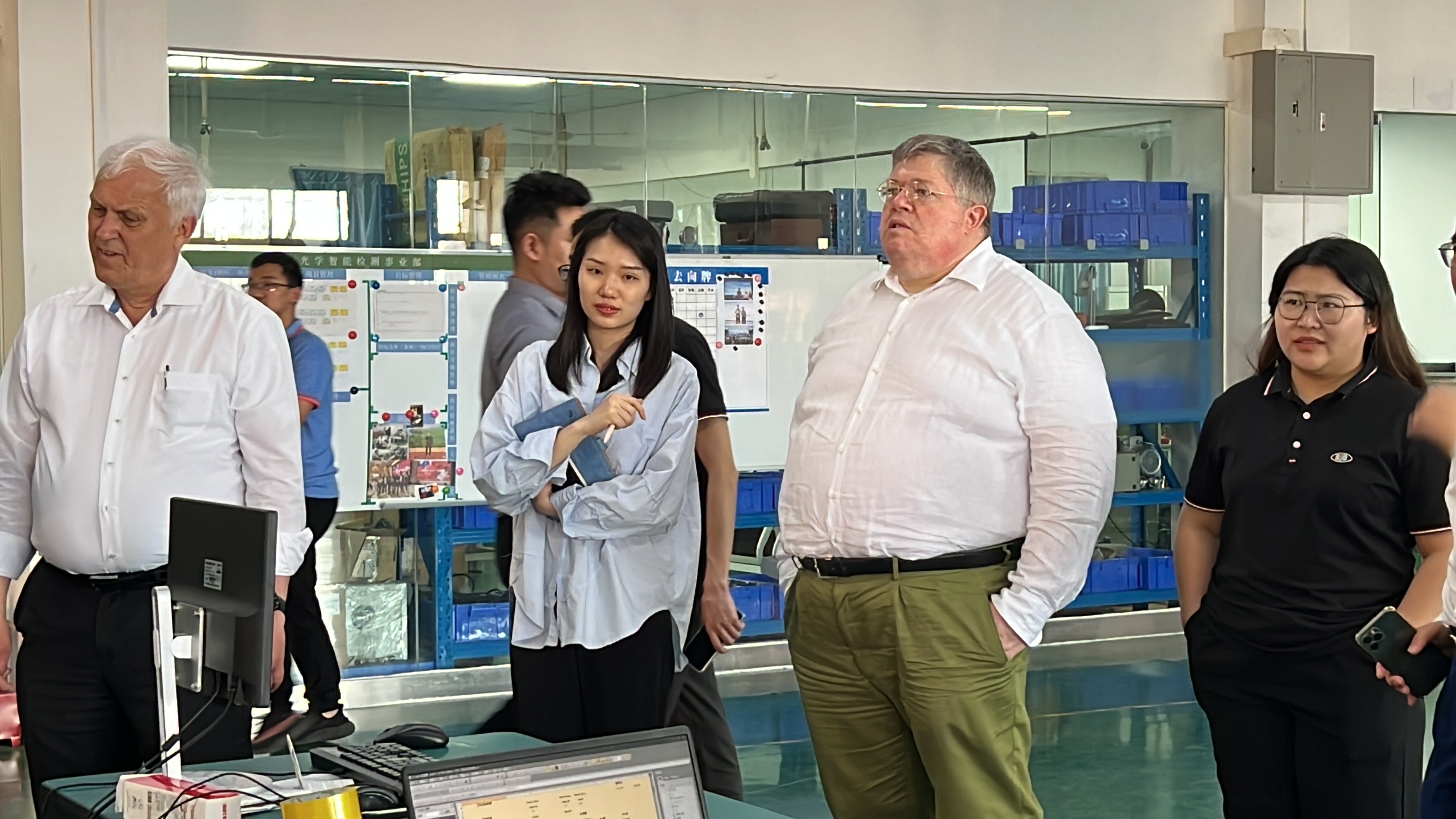 初次会面,袁振海董事长为BJB高层介绍了我司主营方向,并带领BJB高层团队参观我司车间,详细介绍了我司的设备及产品。